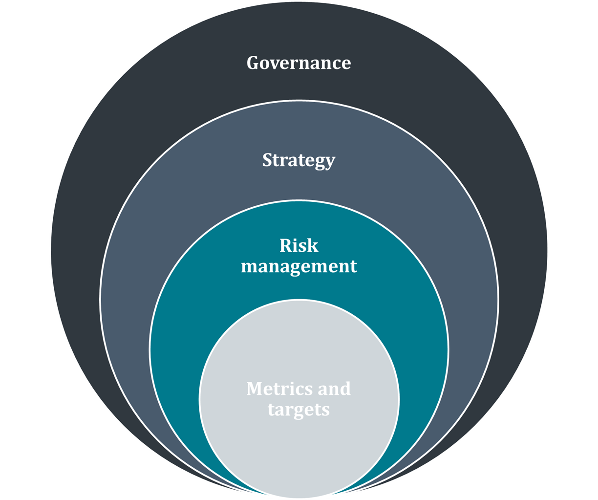 The core of climate disclosures is outlined in the diagram below considering all factors of Environment (E), Social (S) and Governance (G). Aligning your goals and objectives so the right metrics can be evidenced is key.